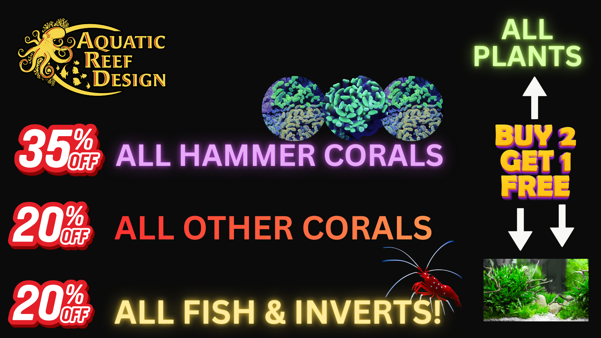 35% OFF ALL HAMMERS 20% OFF ALL OTHER CORAL 20% OFF FISH & INVERTS